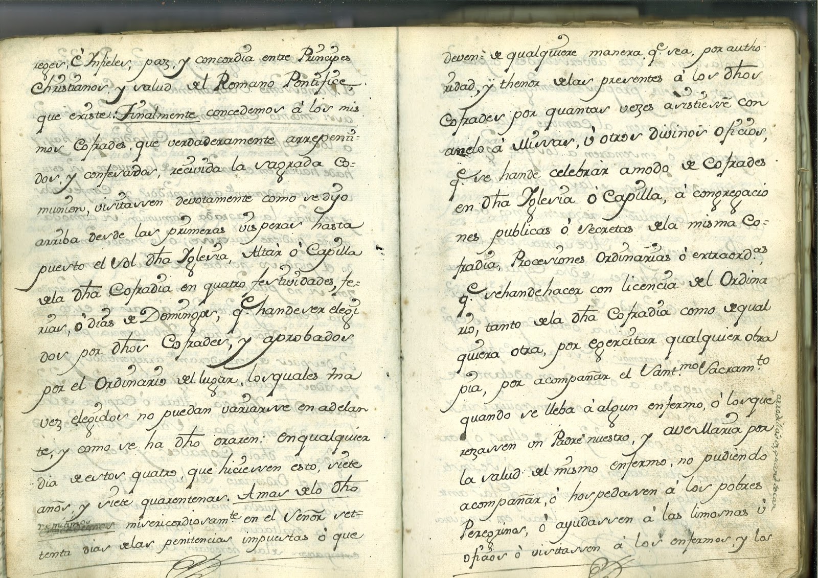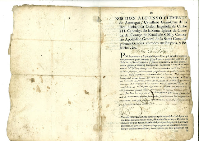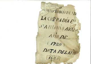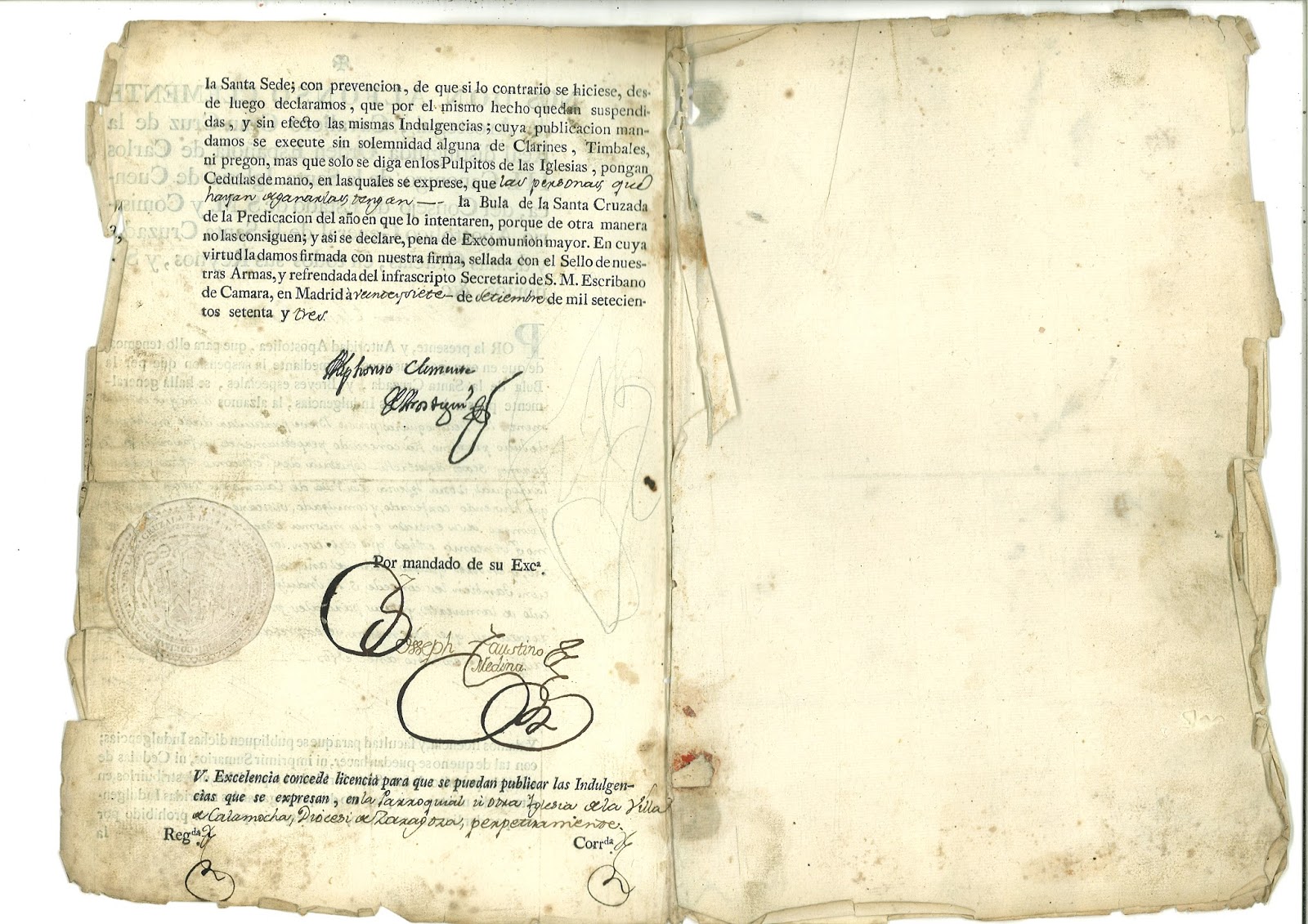 Documento del libro de la Cofradia de San Antón de Calamocha , que contiene bula papal otorgada a dicha cofradia y que se puede consultar en el Archivo Municipal de Calamocha . Fundación San Roque. |