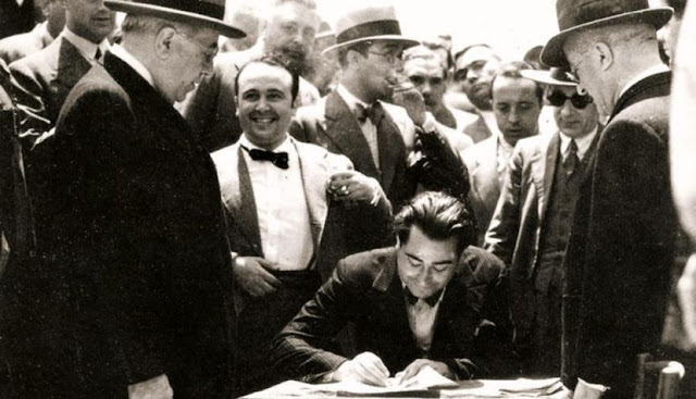 Rodolfo Llopis, sentado junto a Azaña. Foto El Socialista