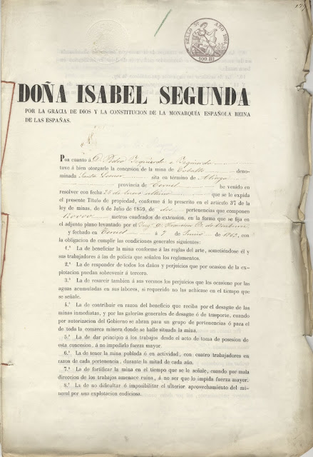 El Decreto de 4 de julio de 1825 inspirado en la Ley francesa de 1810 marca el inicio de la minería moderna de la que el AHPTE conserva documentación desde 1791 hasta 1987.