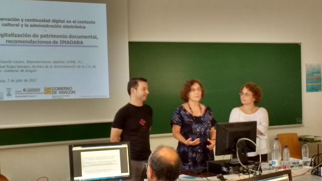 IMADARA se presentó el pasado viernes, 7 de julio de 2017 en el marco del curso extraordinario de la Universidad de Zaragoza, Preservación y continuidad digital en el contexto cultural y la administración electrónica. La presentación corrió a cargo de Isabel Rojas y David Gascón. Ambos son miembros del grupo de trabajo que ha redactado la norma a lo largo de los últimos meses.
