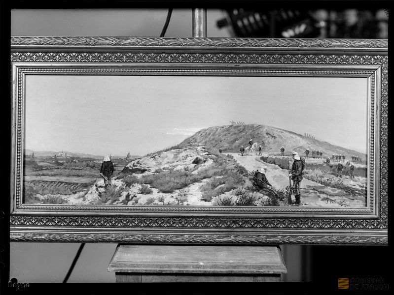 "Paisaje con soldados", pintura realizada por J. Valenzuela