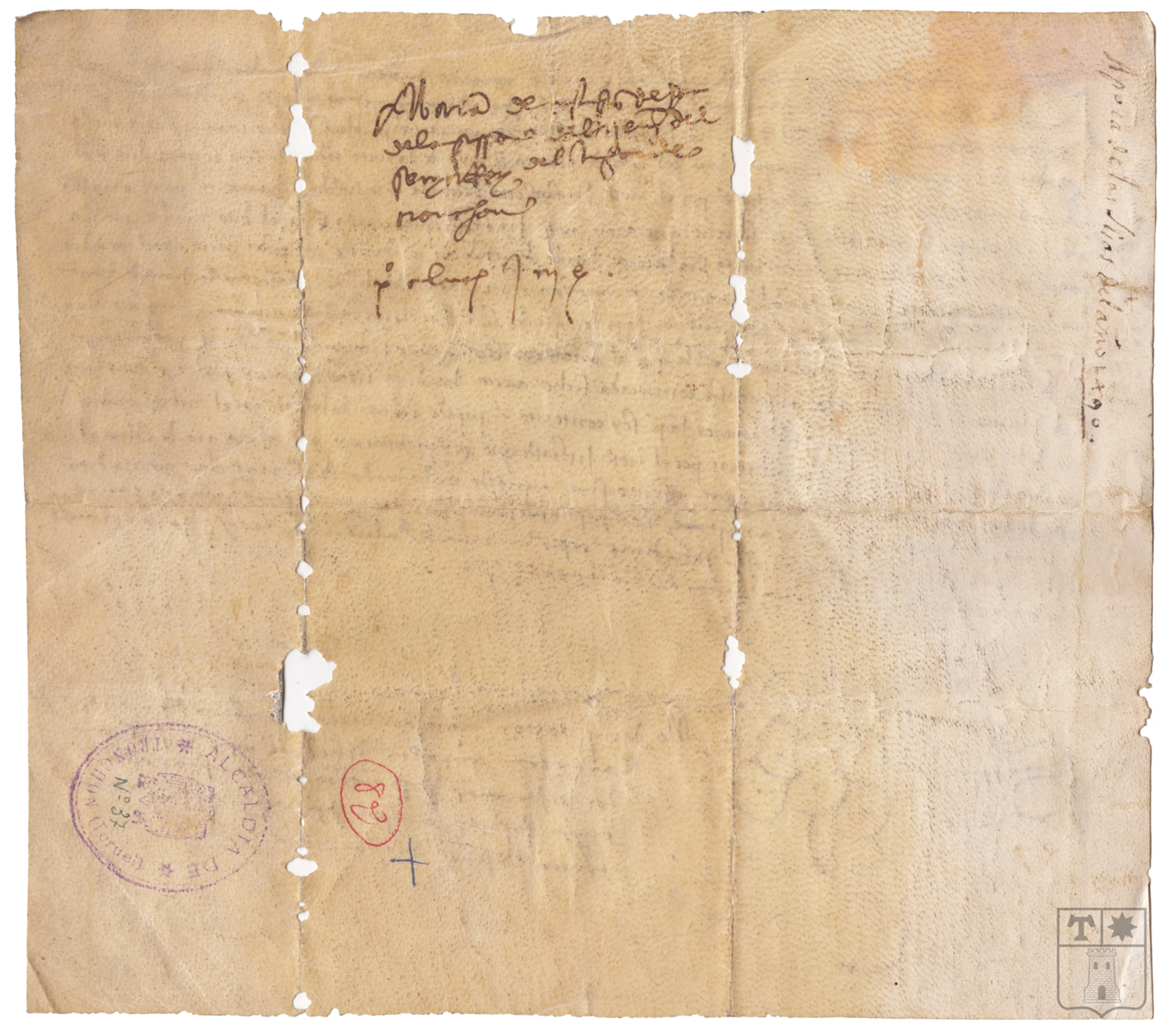 Apoca por la que Miguel Torrero, procurador de mosén Gabriel Sánchez, tesorero general del rey, reconoce haber recibido 1.000 sueldos en pago de las sisas que han de pagar al rey
