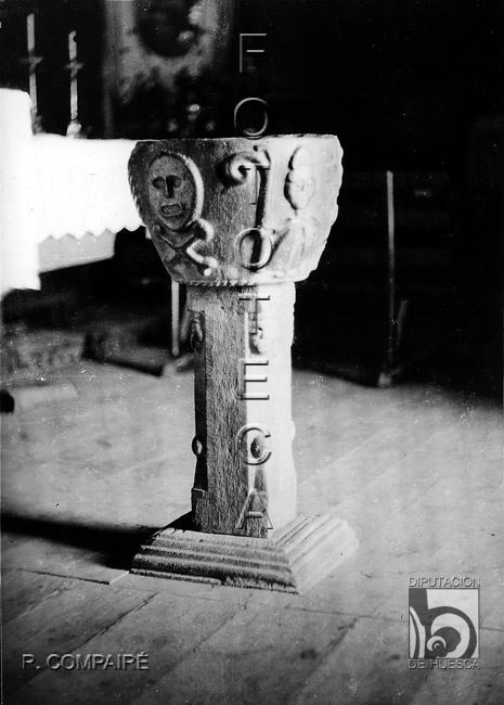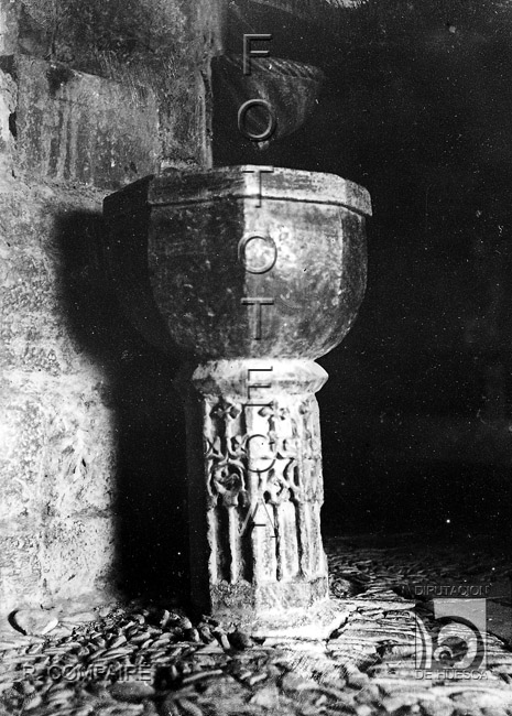 Iglesia de Santa María. Pila para el agua bendita. Ricardo del Arco y Garay. Santa Cruz de la Serós