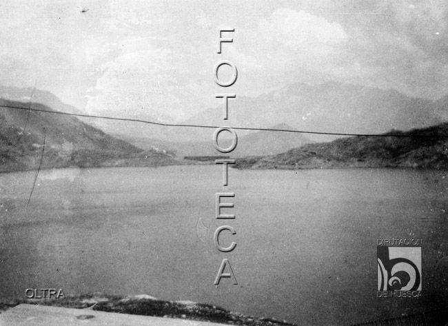 "El pantano de la Peña desde el tren". José Oltra Mera. Triste. Alto Gállego