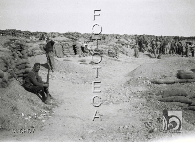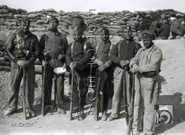 Guardias de asalto en el frente de Alcubierre : Soldados posando en la trinchera. Manuel Choy Llena. Alcubierre. Monegros