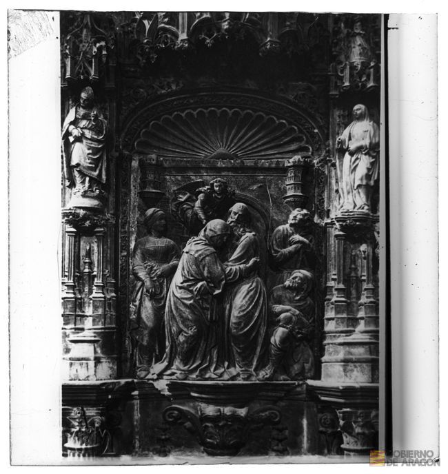 Abrazo ante la puerta dorada. Detalle del altar mayor de la basílica de Nuestra Señora del Pilar