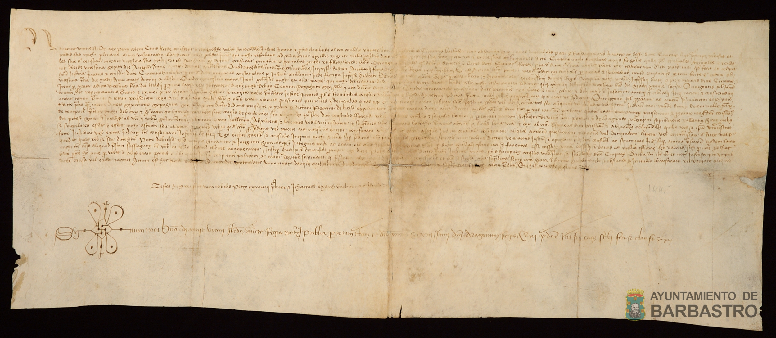 Compromiso y sentencia de los arbitradores nombrados por Barbastro, Berbegal, Fornillos y Montarruevo, acerca de los ademprios y clamor de la pardina de Alcatef donde pueden pacer y abrevar los ganados de Barbastro