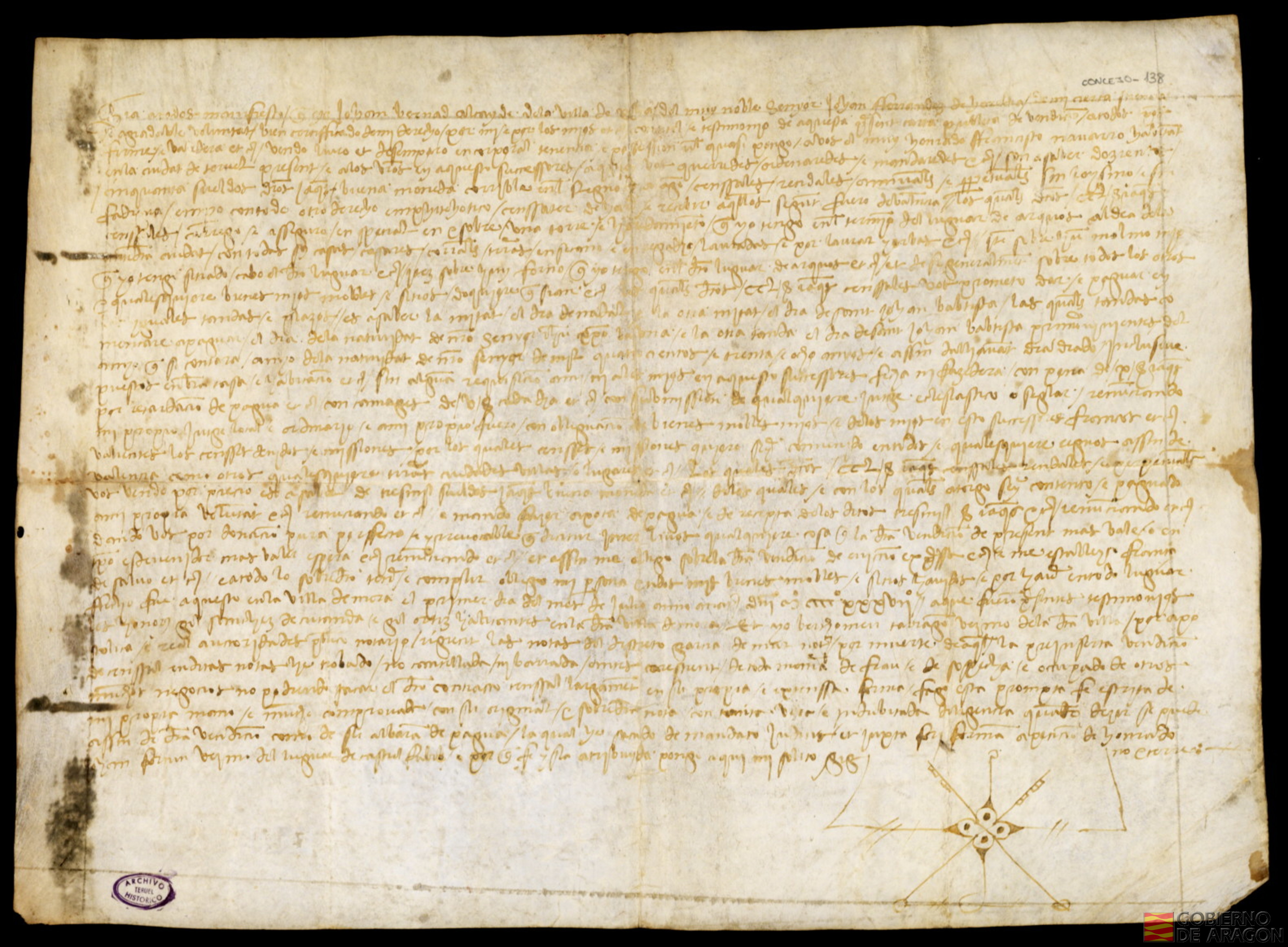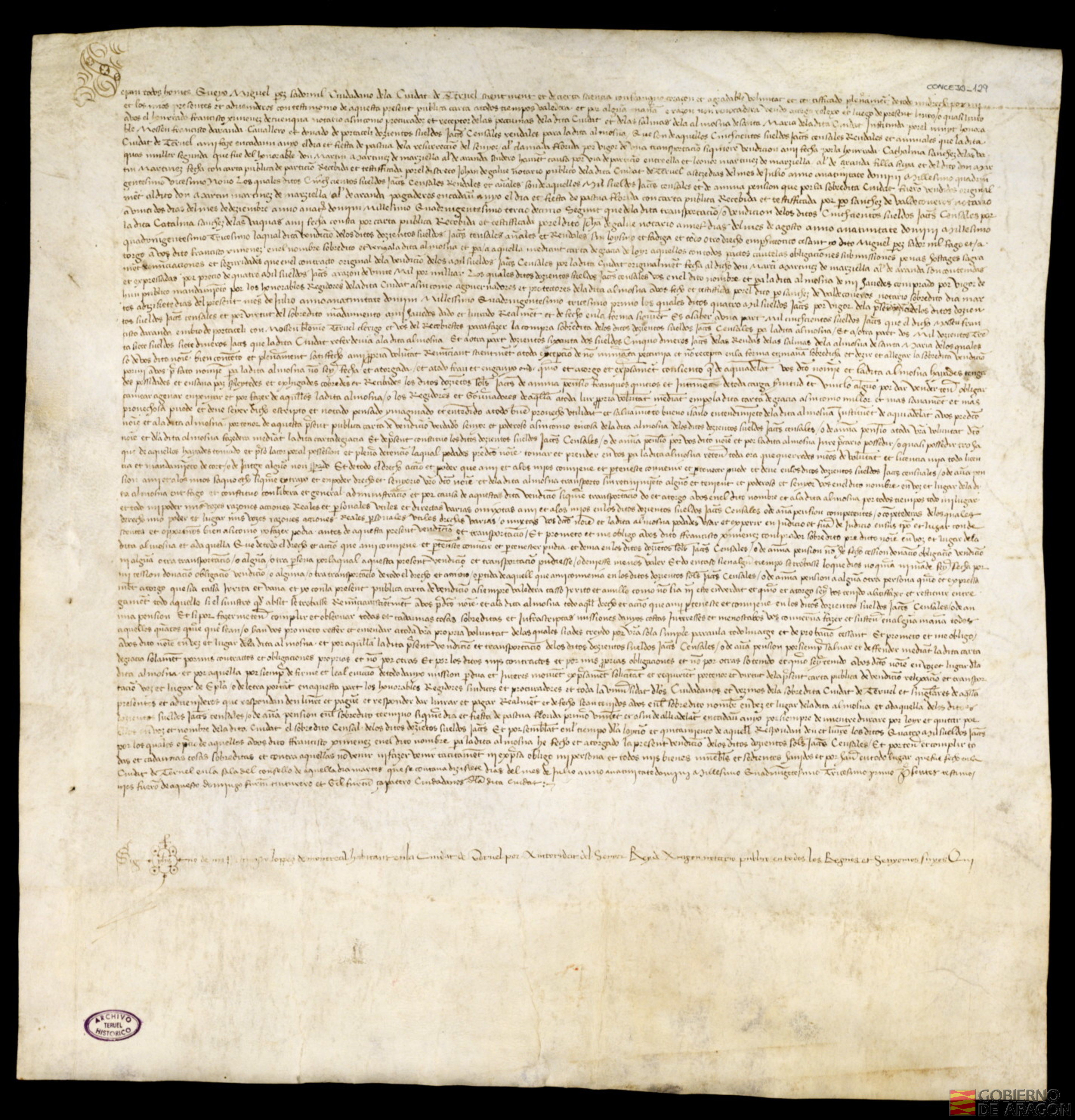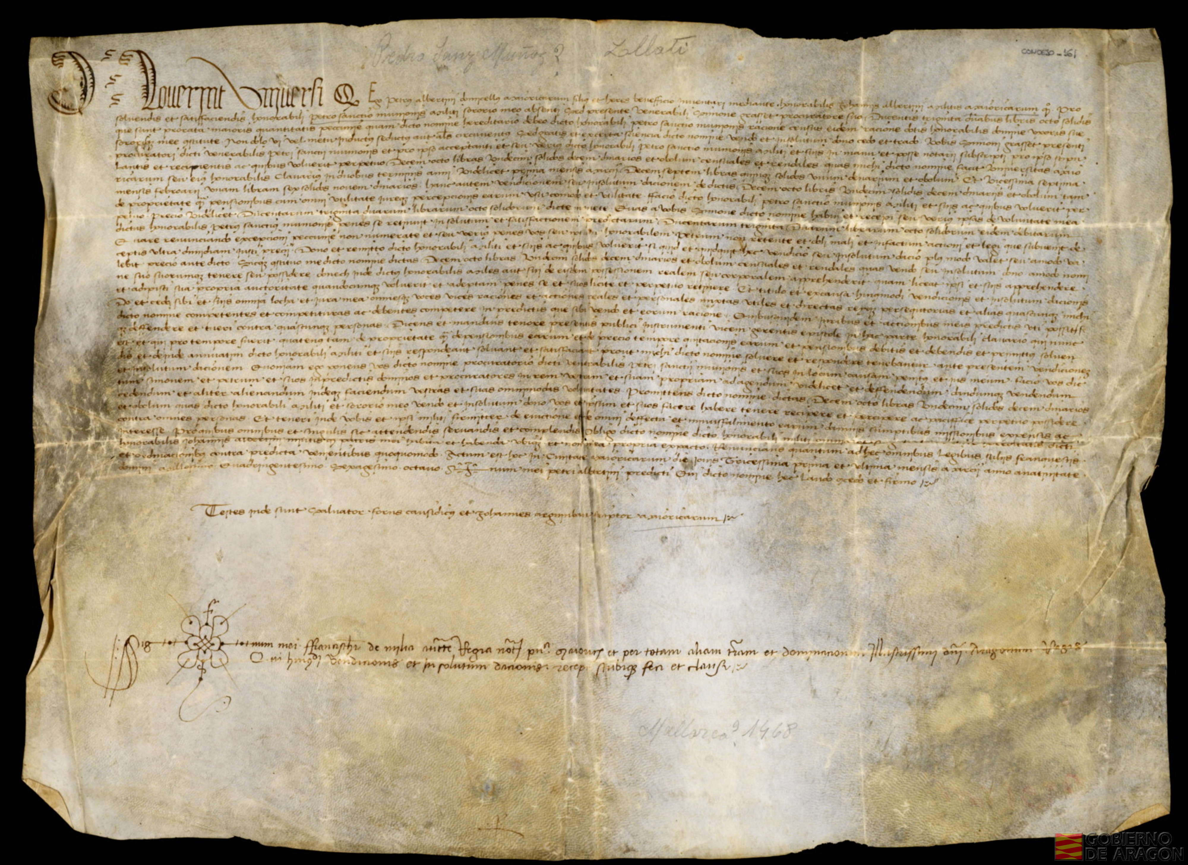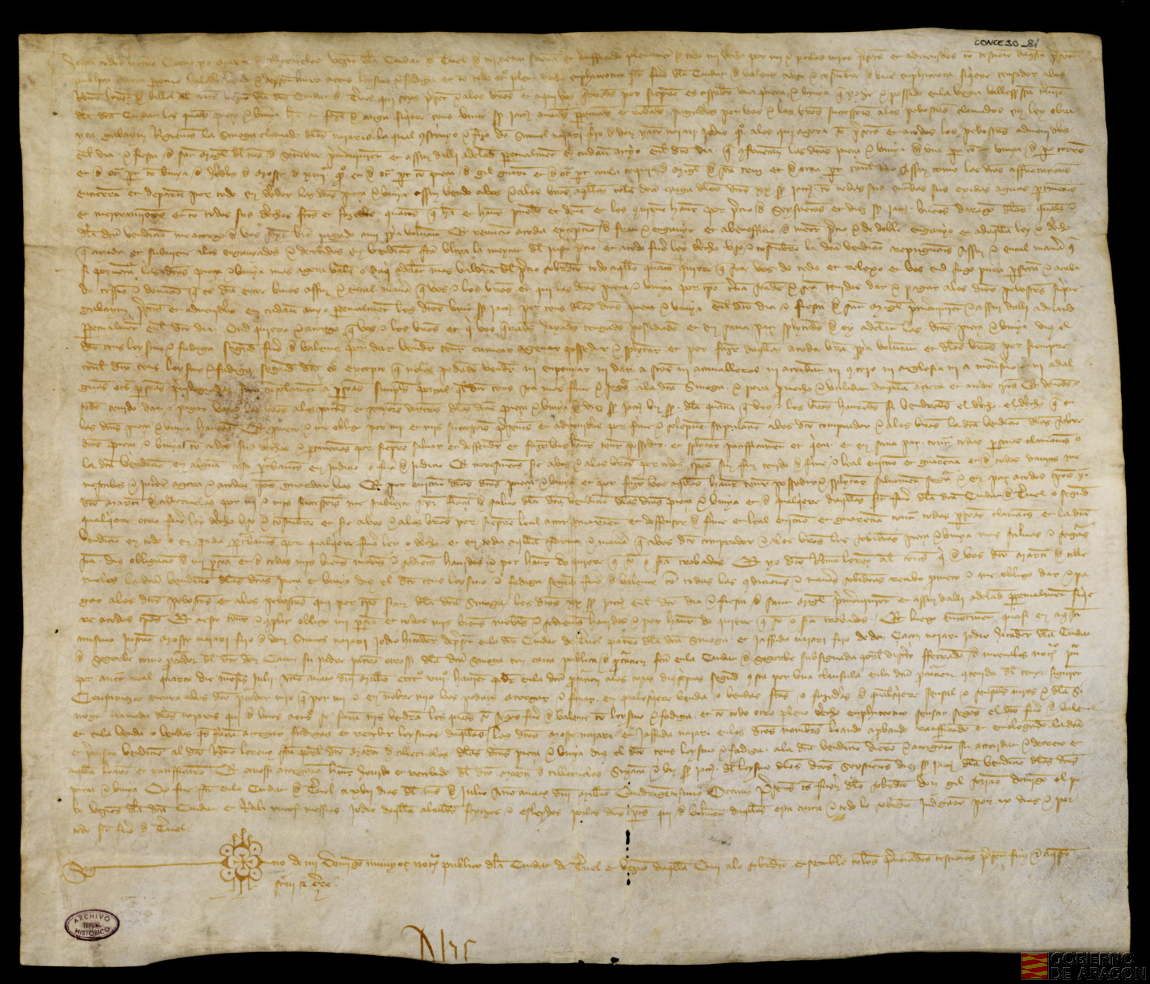 Censal por el que los regidores de la ciudad y en nombre de la misma, aceptan doce mil sueldos jaqueses de un judío de Teruel, Sacón Najarín, hijo de Yanco Najarín, comprometiéndose al pago de un censo anual de mil sueldos jaqueses