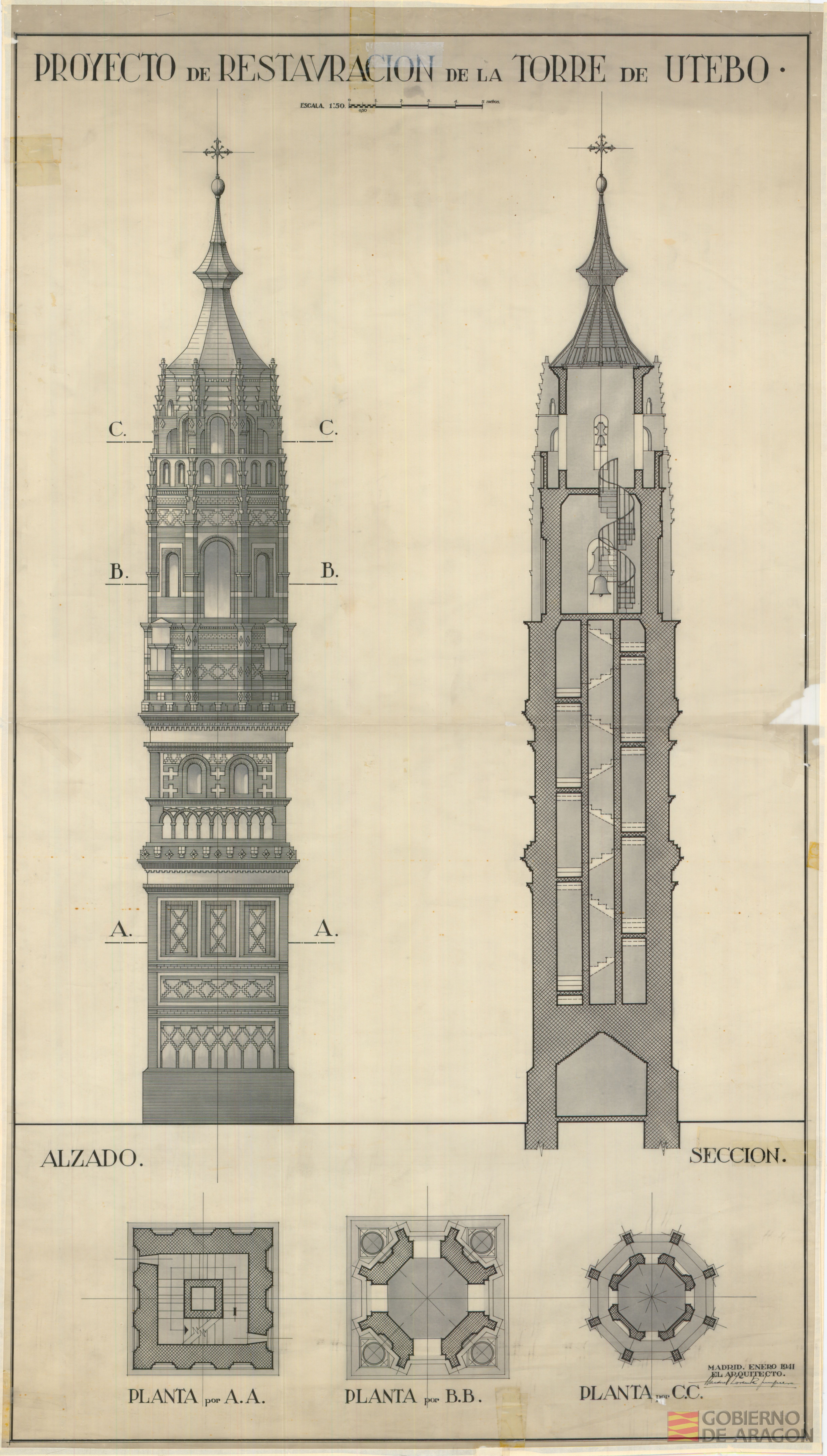 Proyecto de reconstrucción del primitivo chapitel de la torre de Utebo. Utebo