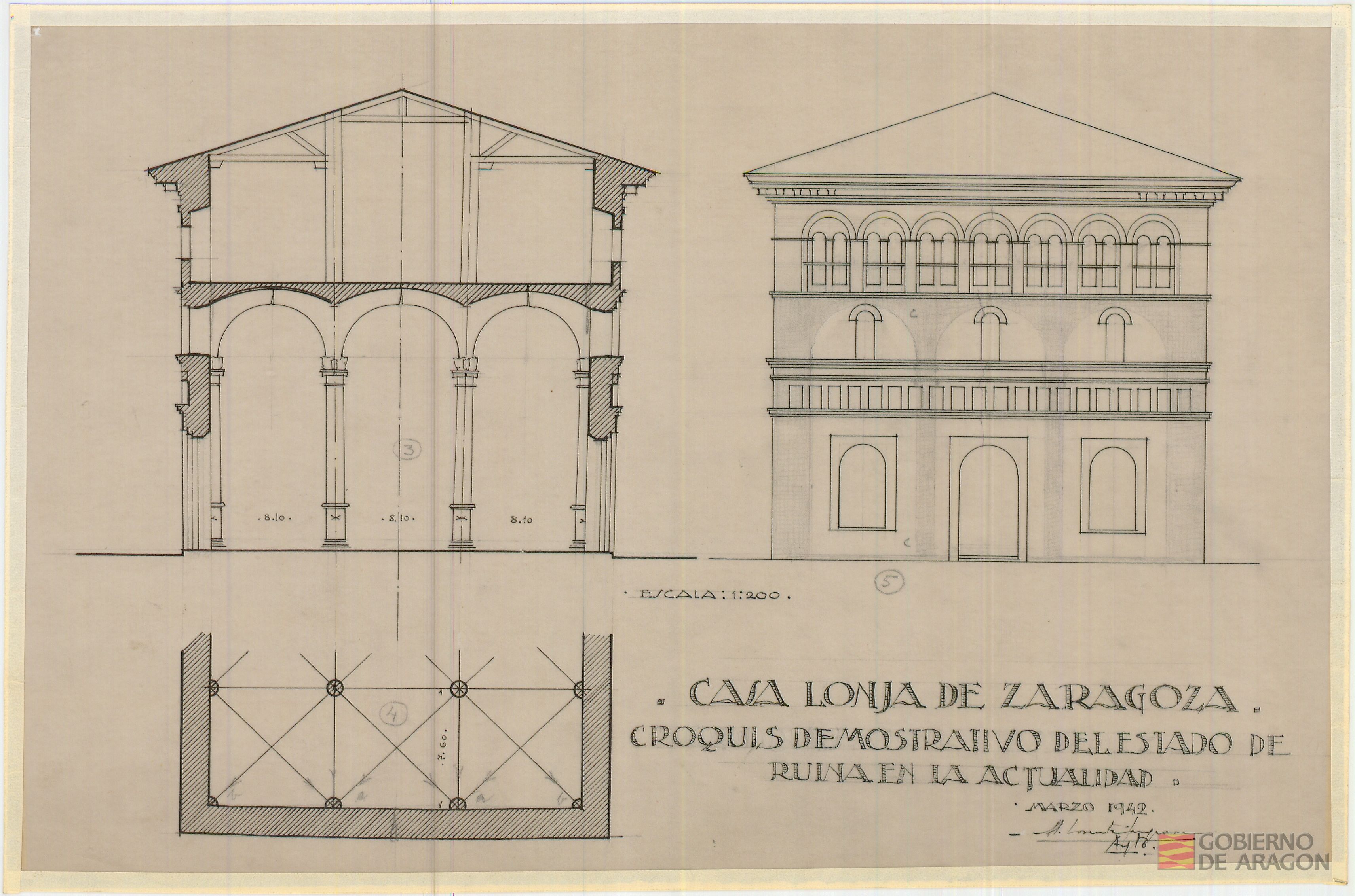 Casa Lonja de Zaragoza. Croquis demostrativo del estado de ruina en la actualidad. Zaragoza