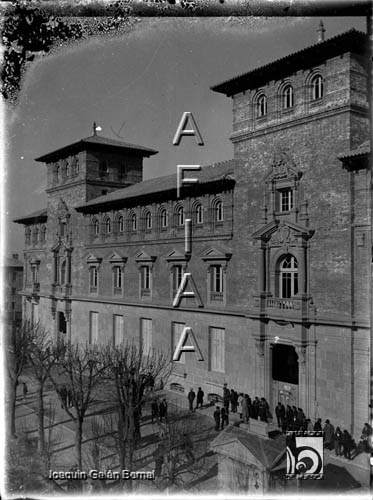 Vista del edificio de la Delegación de Hacienda y de los Porches de Vega Armijo. Joaquín Galán Bernal. Huesca
