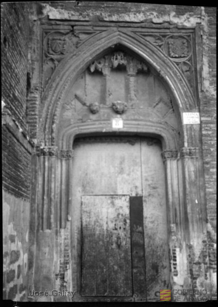 Quinto (Zaragoza). Iglesia parroquial de la Asunción. Puerta principal, gótica. José Galiay Sarañana