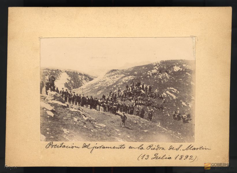 Prestación del juramento en la piedra de San Martín. Tributo de las tres vacas de 1892. Joaquín Gil Berges