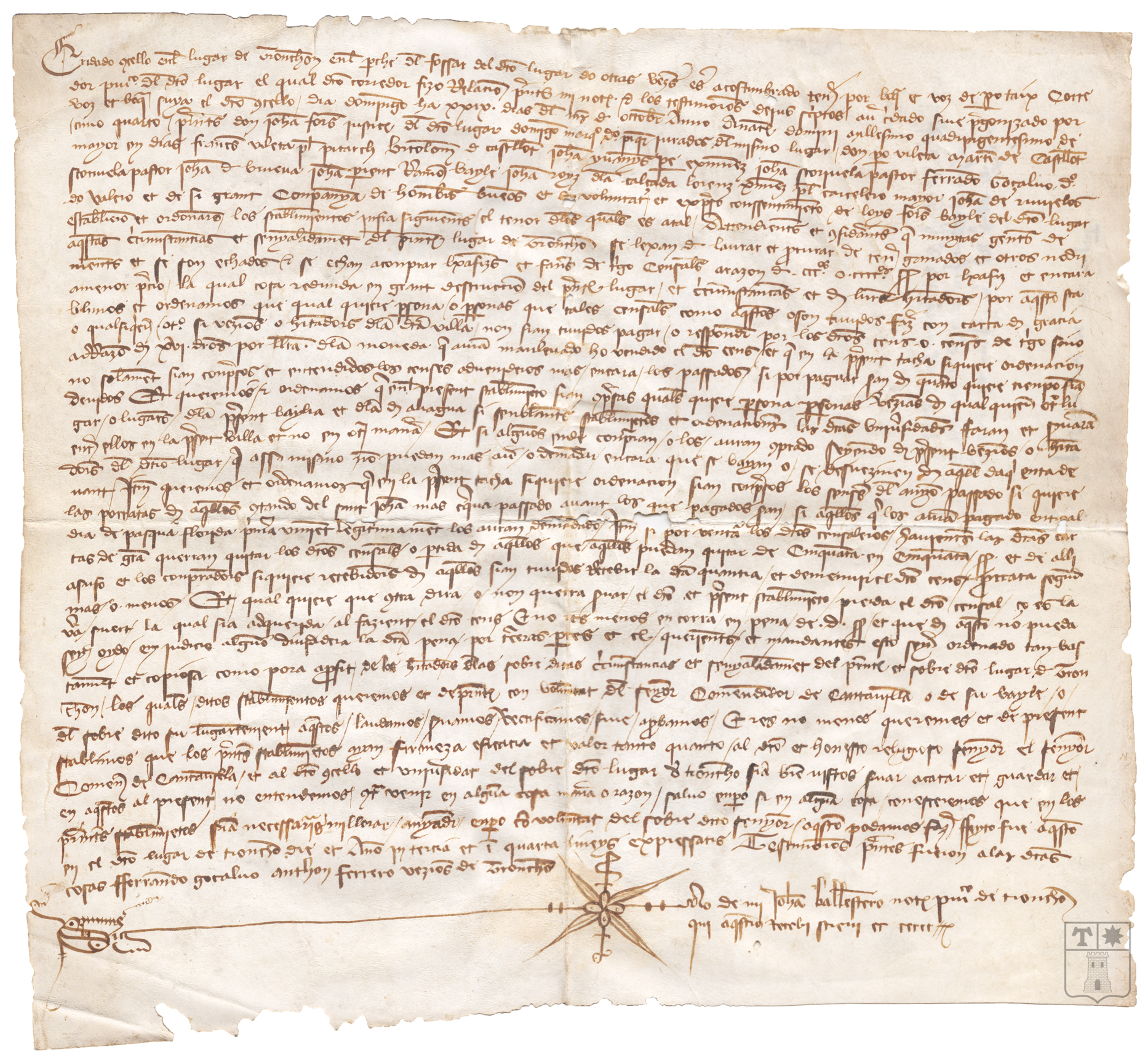 Carta de vecindad por la que Domingo Torner conviene con los jurados de Tronchón en adquirir el derecho de vecindad por 6 años comprometiéndose a pagar las pechas, el impuesto del maravedí y los demás que correspondan