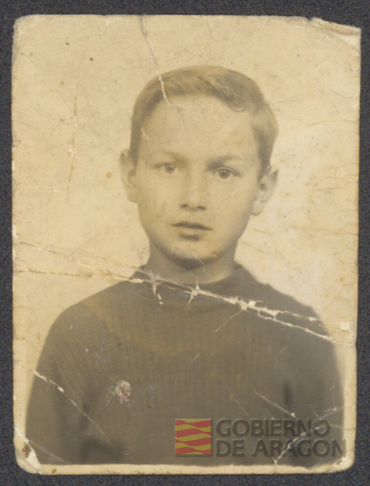 Retrato de Ángel Conte Cazcarro de niño sosteniendo una raqueta en sus manos
