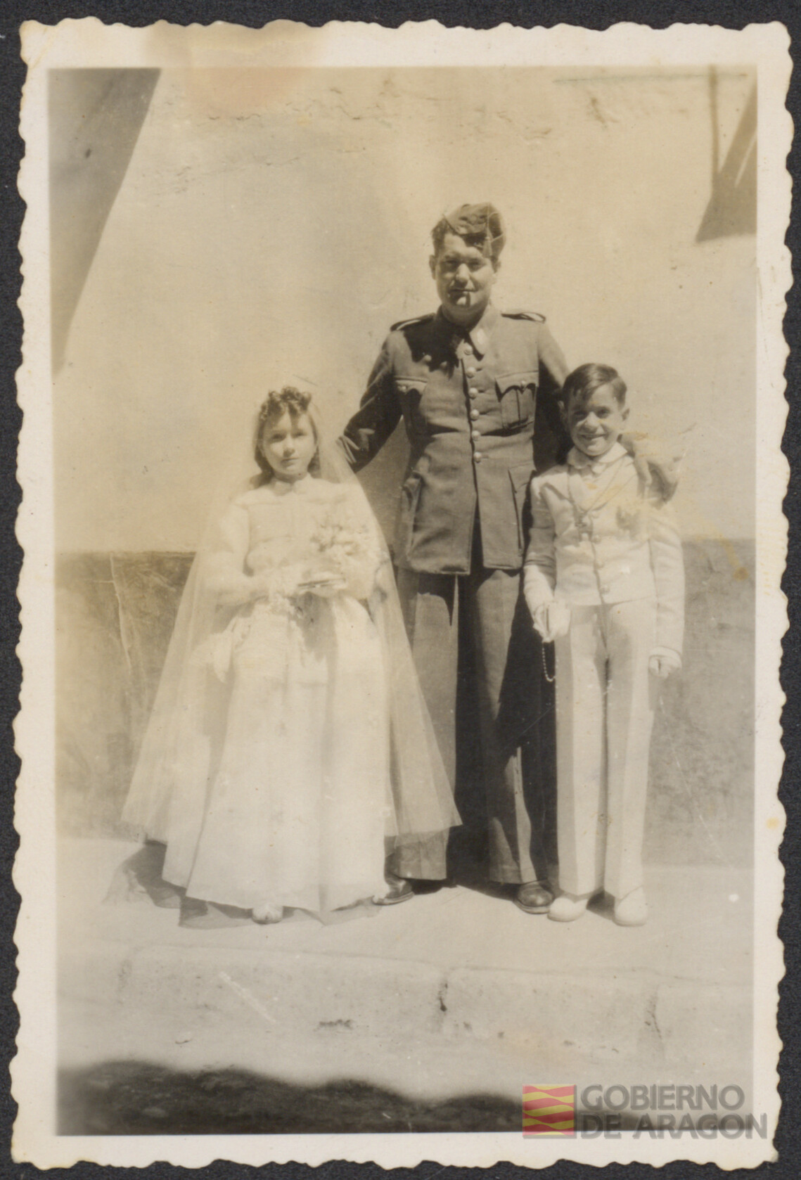 Gloria Conte Cazcarro y José Conte vestidos de comunión junto a Alfredo Conte Fajó