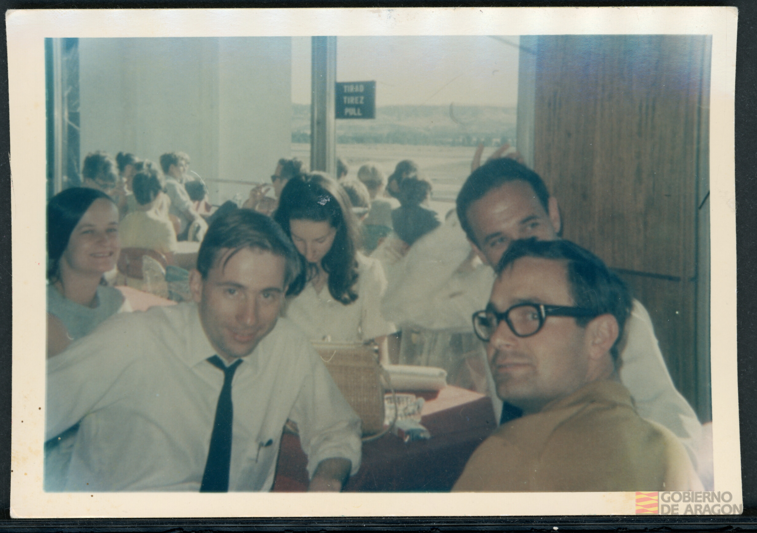 Ángel Conte Cazcarro junto con James Mayer, Luisa Mayer y Doris Sablic en Barajas