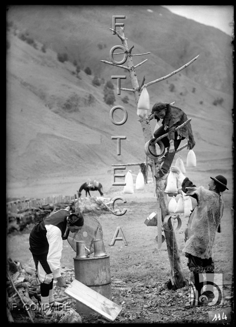 "Pastores haciendo queso en Guarrinza". Ricardo Compairé Escartín. Valle de Guarrinza